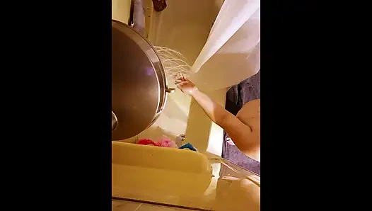 Mature woman taking a shower